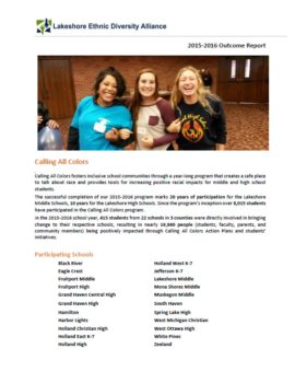 Calling All Colors (CAC), a program for middle and high school students, provides inviting, safe spaces for students to talk about biases, particularly related to race and ethnicity. CAC gives students tools for creating and increasing positive impacts within their schools.